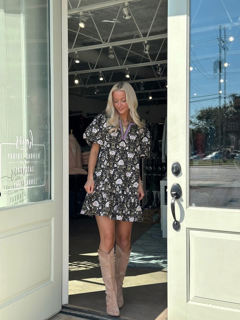 Step into spring with the Elsa Mini Dress, a playful take on effortless style. This charming piece features a stunning purple base adorned with delicate green and white florals that dance across the fabric. Perfect for brunch dates, garden parties, or whenever you want to add a pop of color to your day. The mini silhouette keeps things fun and flirty while the botanical print brings a fresh, nature-inspired vibe. Dress it up with heels or keep it casual with sneakers—this versatile beauty works for any occasion.
