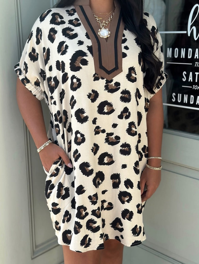 Step into the new season with the Allison Cheetah dress—a lightweight, breezy choice that’s purr-fect for those in-between days. Its playful cheetah print adds a wild touch while keeping you comfy as the weather shifts. Layer it up or wear it solo for a stylish transition into fall that keeps things fun and fresh.