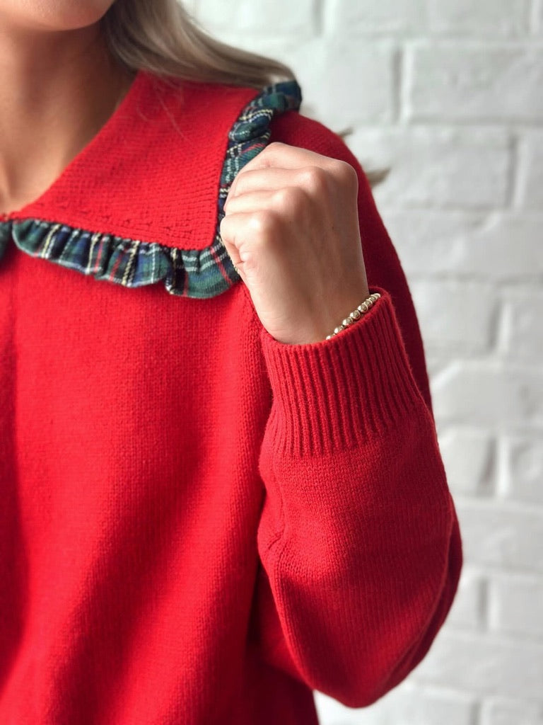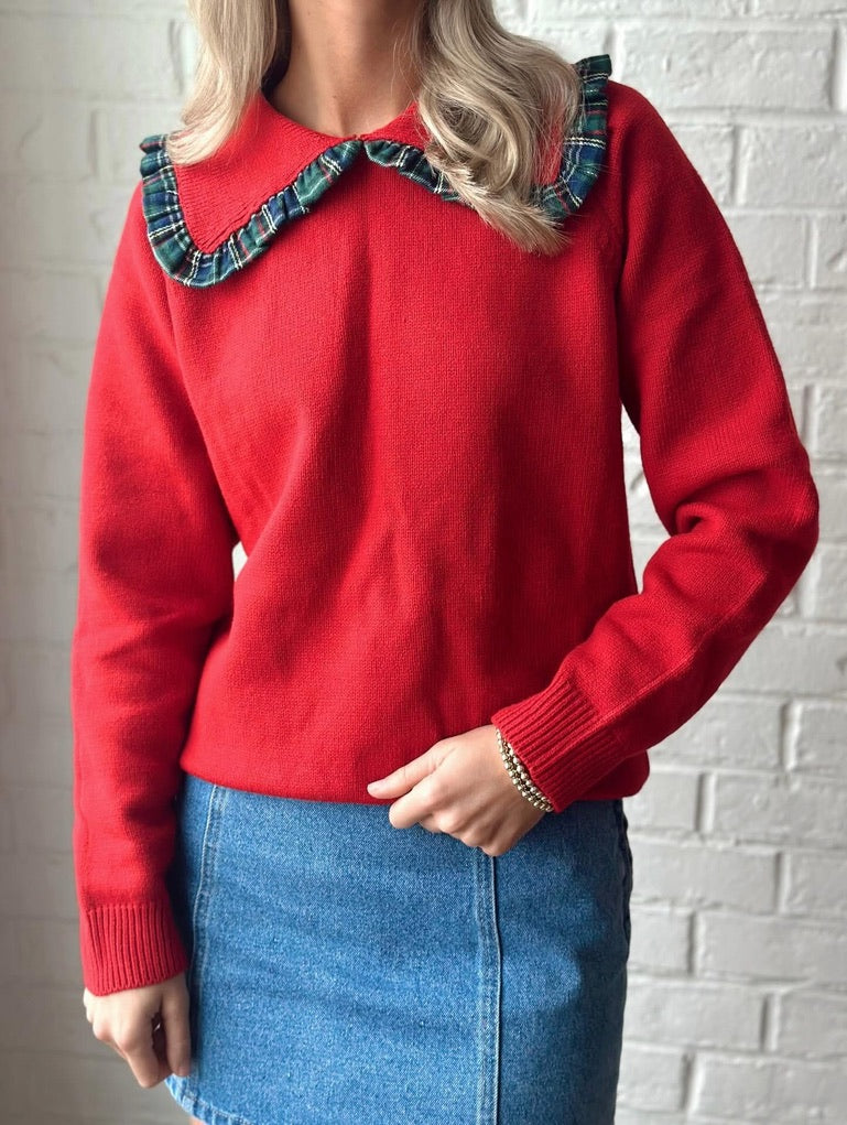 Timeless plaid Peter Pan collar top with a vintage-inspired silhouette. This classic piece features a structured collar and cozy knit construction, perfect for layering or wearing solo. The traditional plaid pattern adds preppy charm to any wardrobe. Ideal for creating effortlessly polished looks with a nostalgic twist.