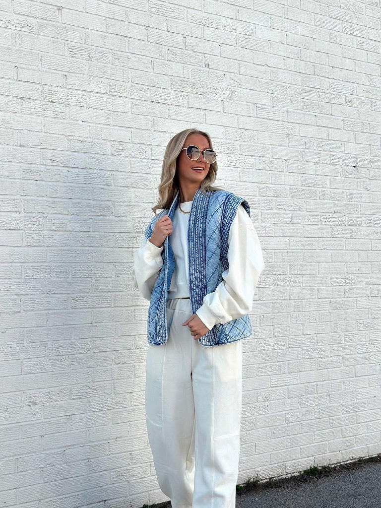 Layer up with the Jo Quilted Vest, a timeless denim piece that adds warmth and style to any outfit. The quilted construction provides lightweight insulation perfect for transitional seasons, while the classic denim color pairs effortlessly with jeans, dresses, or casual wear. Versatile enough for weekend errands or dressed-up occasions, this vest is a wardrobe essential that works year-round.