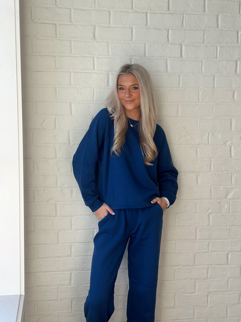 Nautical Blue Set Complete your wardrobe with this coordinated two-piece ensemble featuring a matching top and pants. The classic nautical blue palette offers versatile styling for any occasion, whether you're dressing up or keeping it casual. Designed to work together seamlessly, this set takes the guesswork out of getting ready while delivering a polished, put-together look.