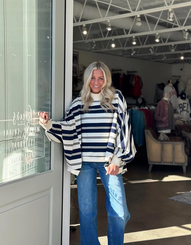 Effortless elegance meets nautical charm in this striped navy top. The flowy silhouette drapes beautifully, offering comfort and movement for everyday wear. Perfect for layering or wearing solo, this versatile piece transitions seamlessly from casual outings to relaxed weekend adventures.